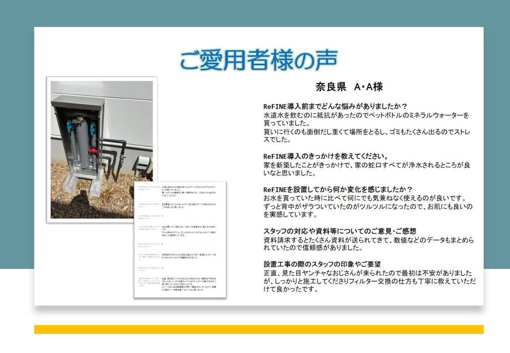 セントラル浄水器ReFINE(リファイン)ご利用のお客様からアンケートが届きましたので、ご紹介させて頂きます。