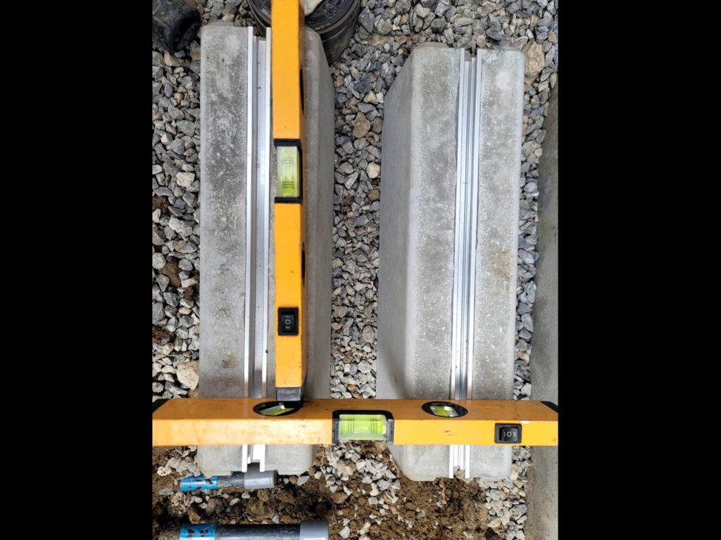 ReFINEの設置場所にブロックを置き、水平になっているかチェックしています。